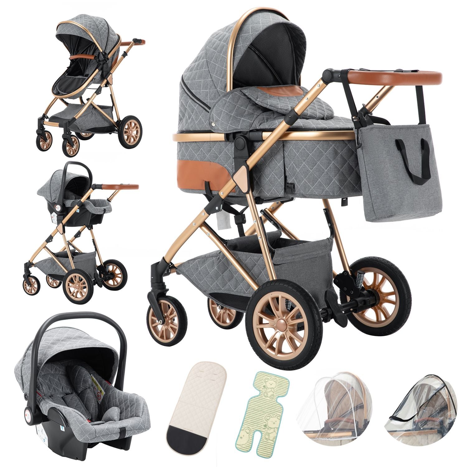 ♥ 3-in-1 Stroller: This Gcarebb stroller is a 3-in-1 stroller designed for babies from 0 to 15 kg. It comes in a complete set and is easy to move around as you wish. Not only can it be used as a stroller, it can also be transformed into a car seat and a crib.